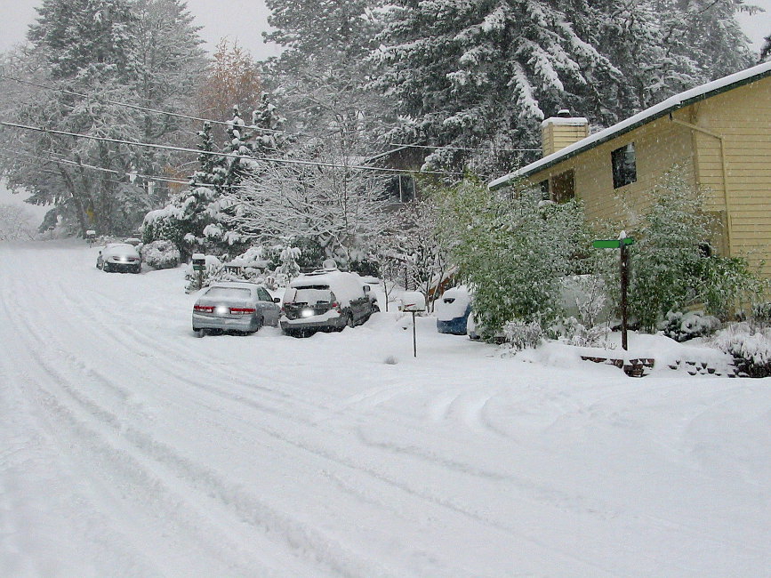 and even ice appeared on the roads. the Eugene population isnt used to drive on snow.