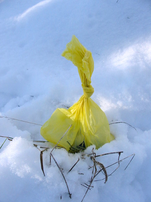 sometimes you can see a small bag lying on the ground next to trails in the woods.