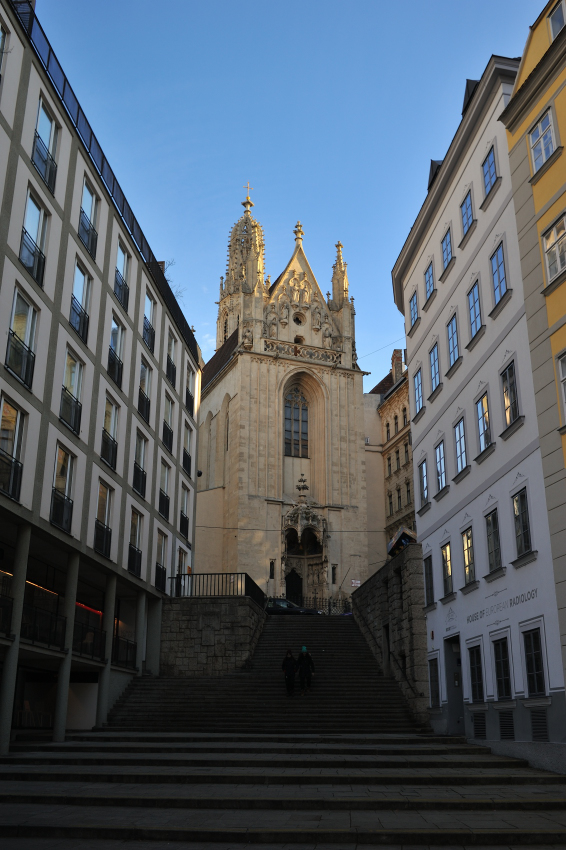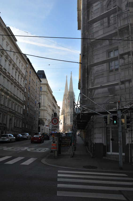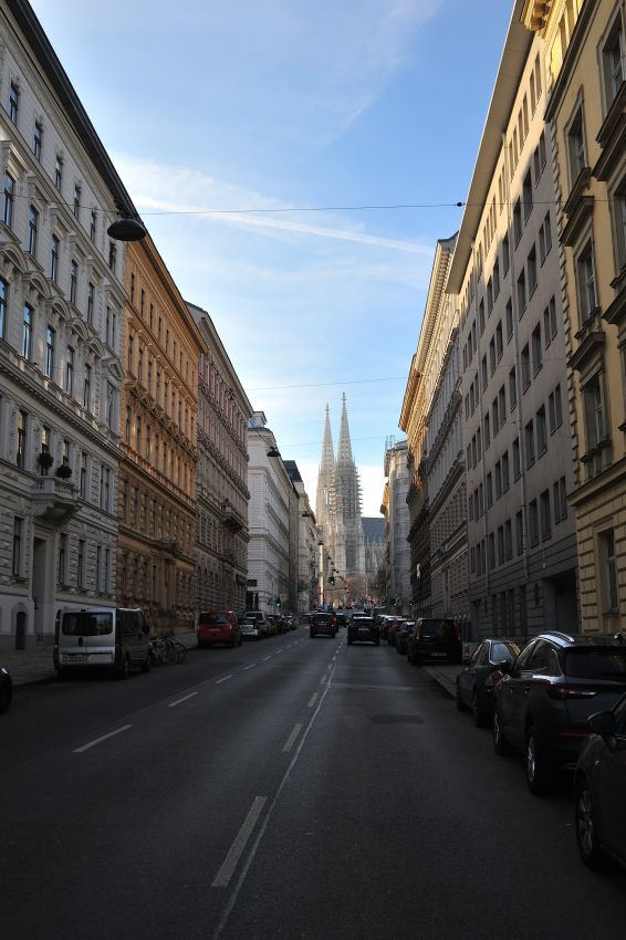 the street leading to the votiv church frames this beautiful church in a very nice way